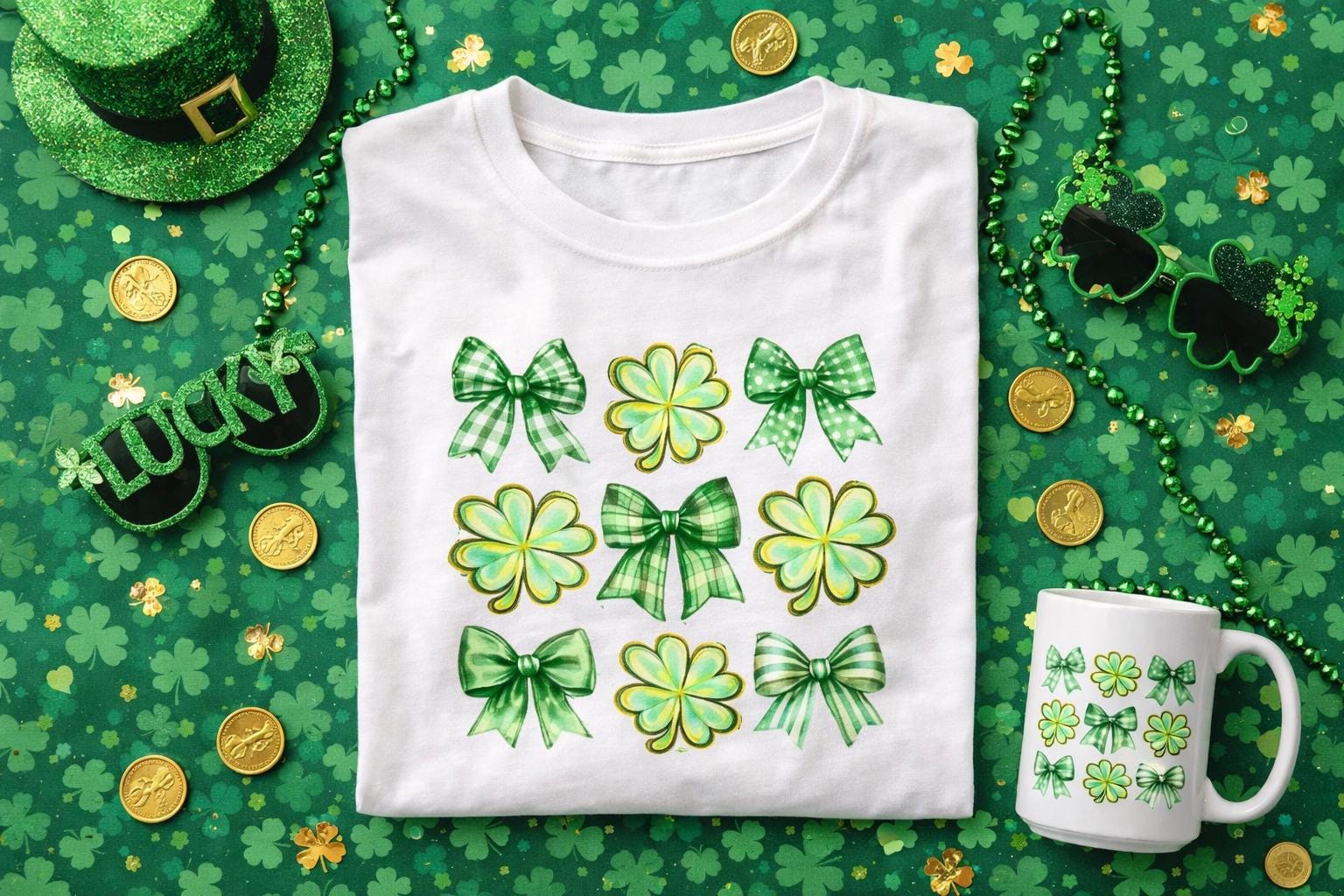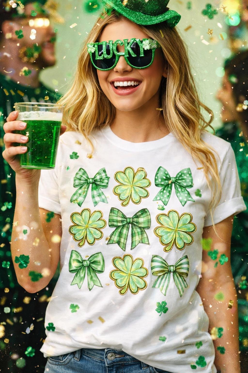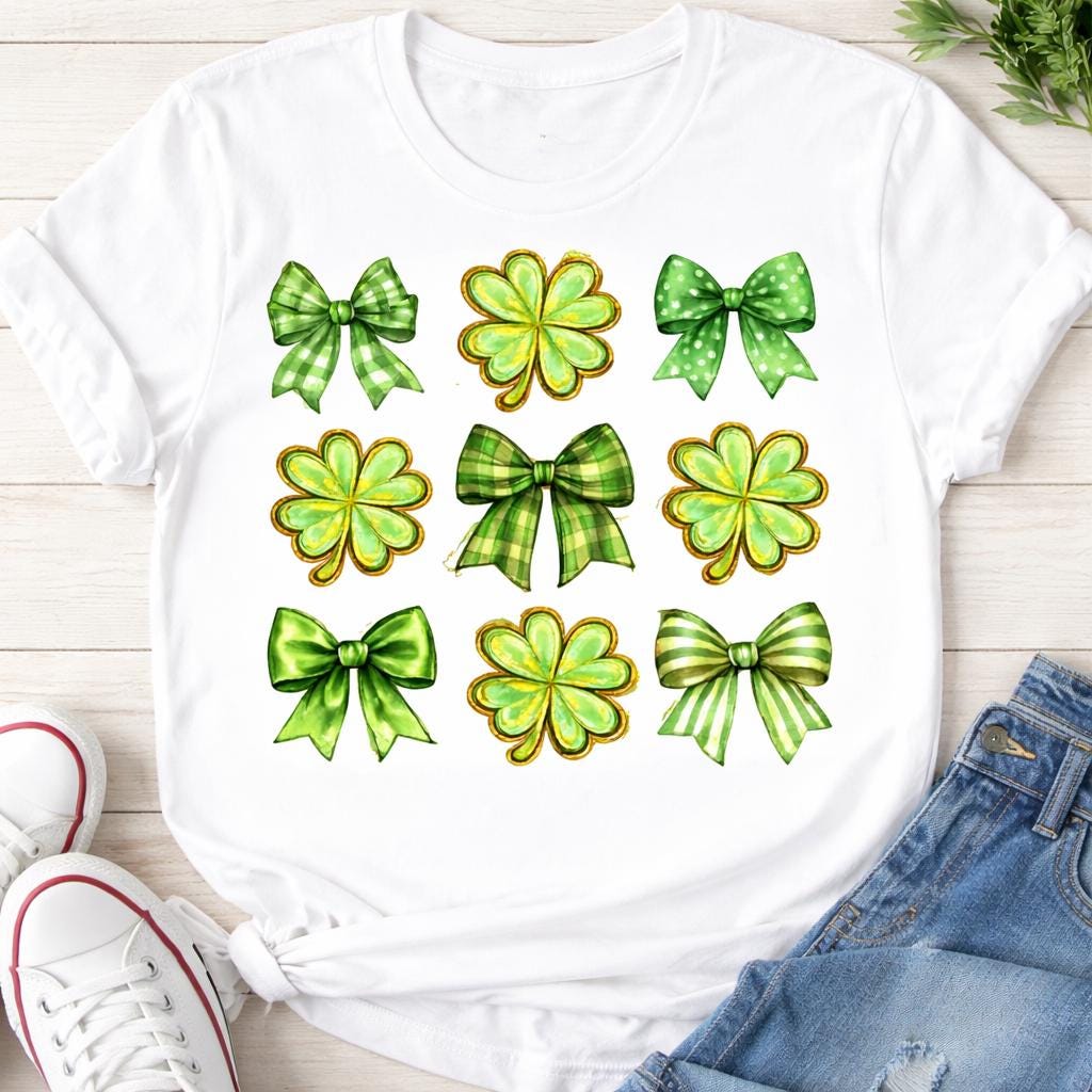 Celebrate St. Patrick’s Day in style with this trendy shamrock PNG combining coquette bows and lucky clovers for a boutique-inspired look customers love.