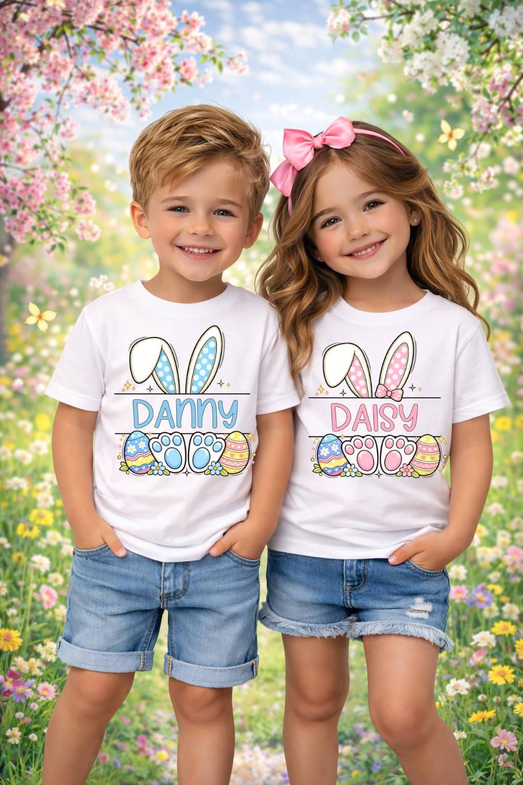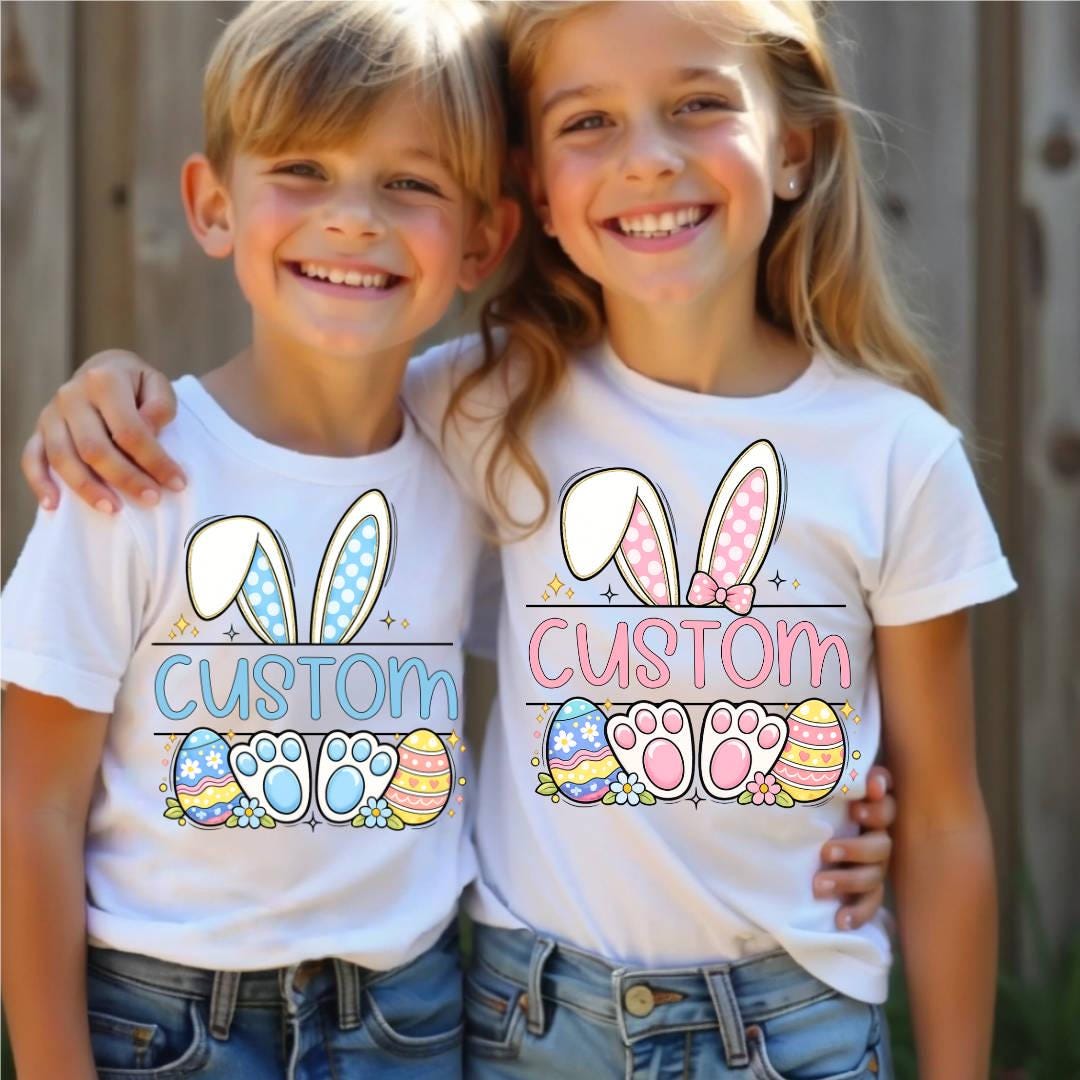Make Easter extra special with this adorable personalized bunny name design perfect for kids, babies, siblings, and family Easter outfits!