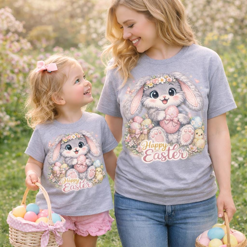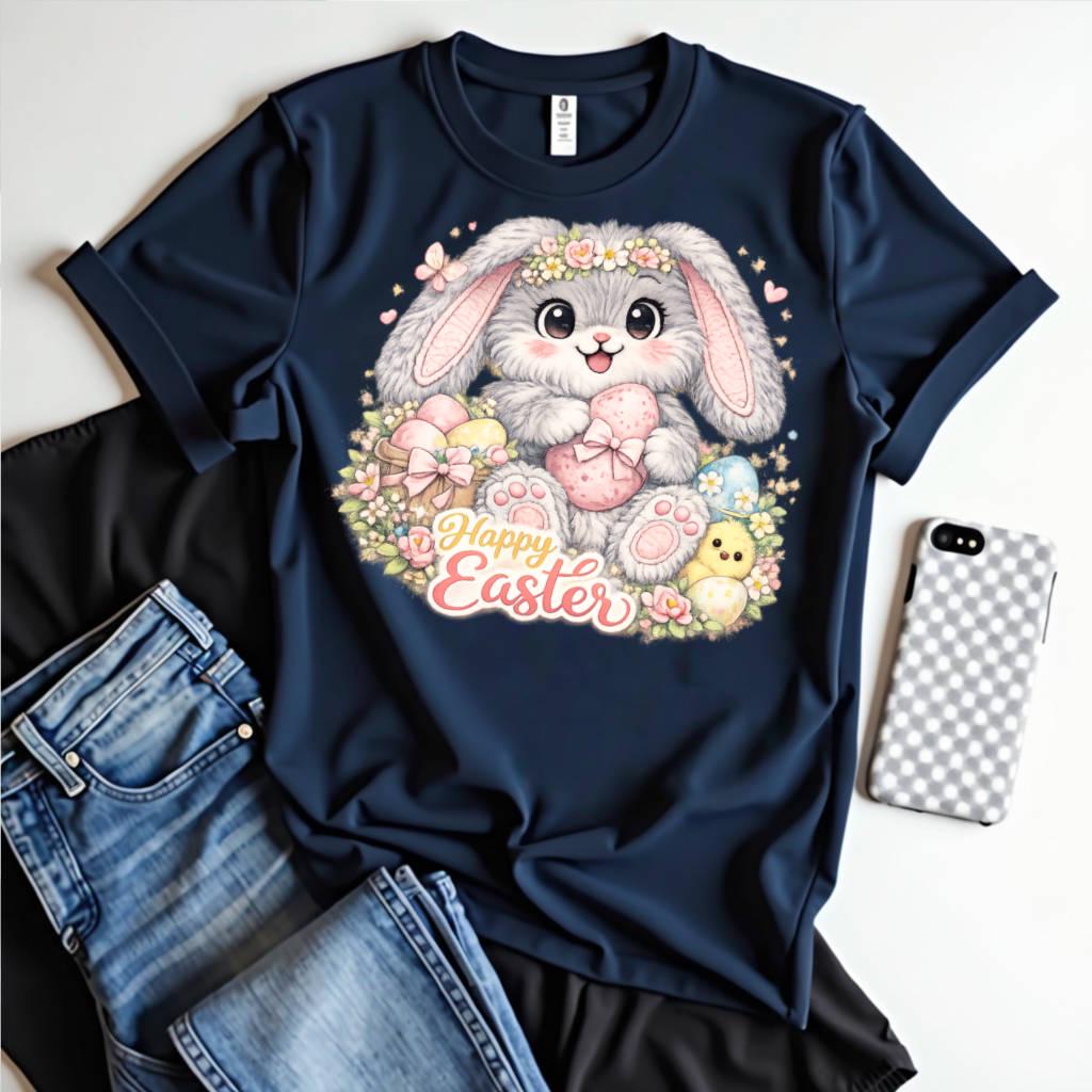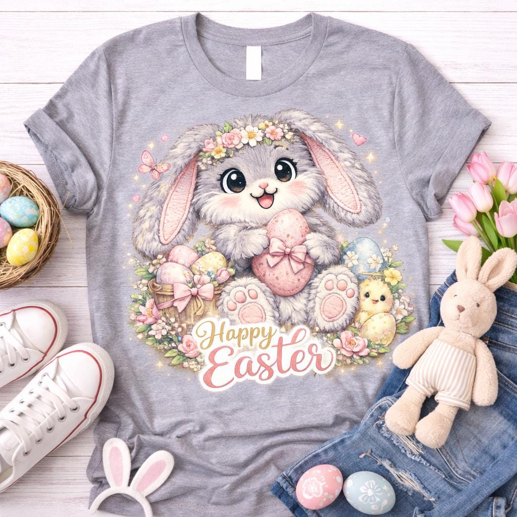 This design is perfect for anyone looking for a cute pastel Easter bunny graphic for spring projects and Easter celebrations.