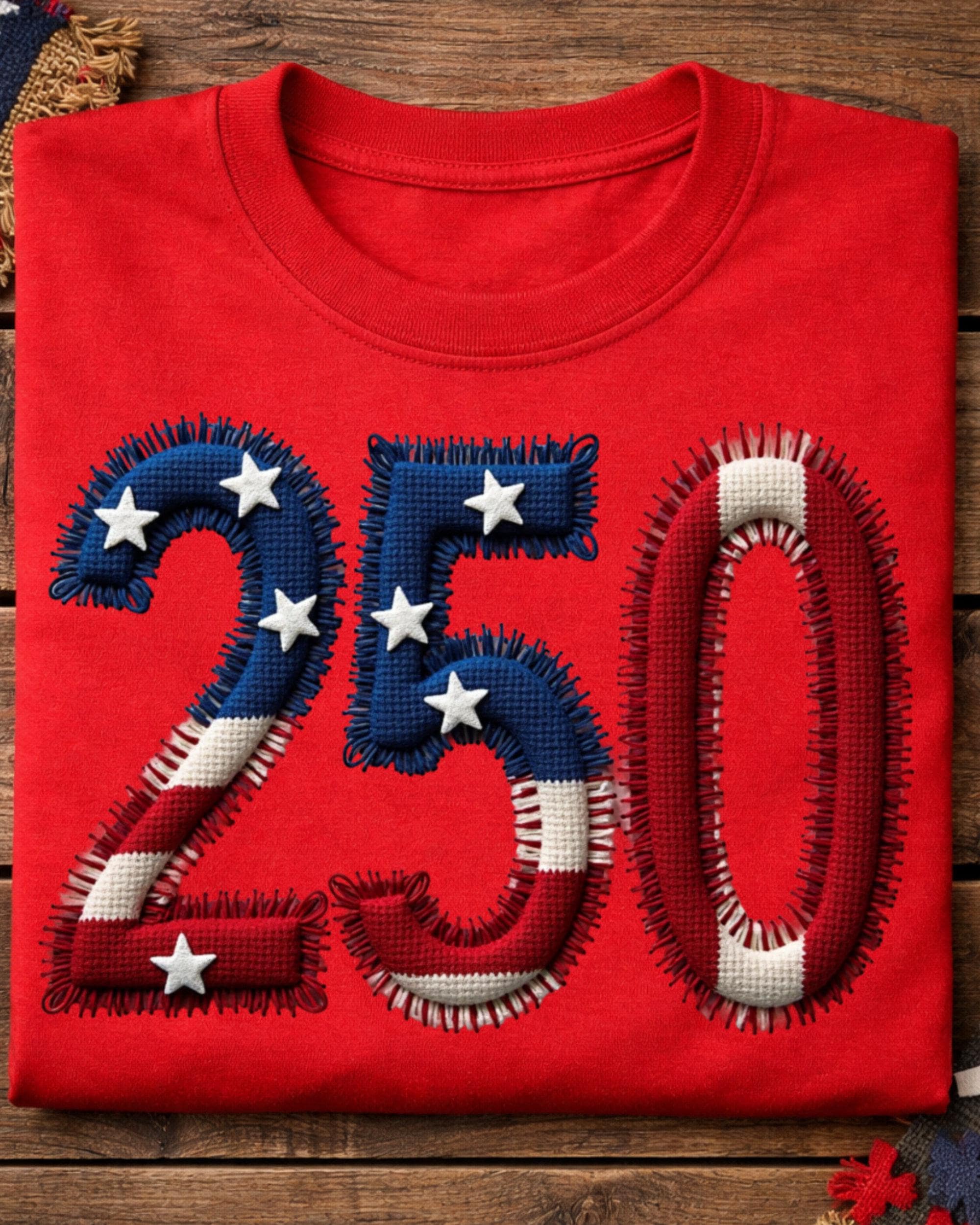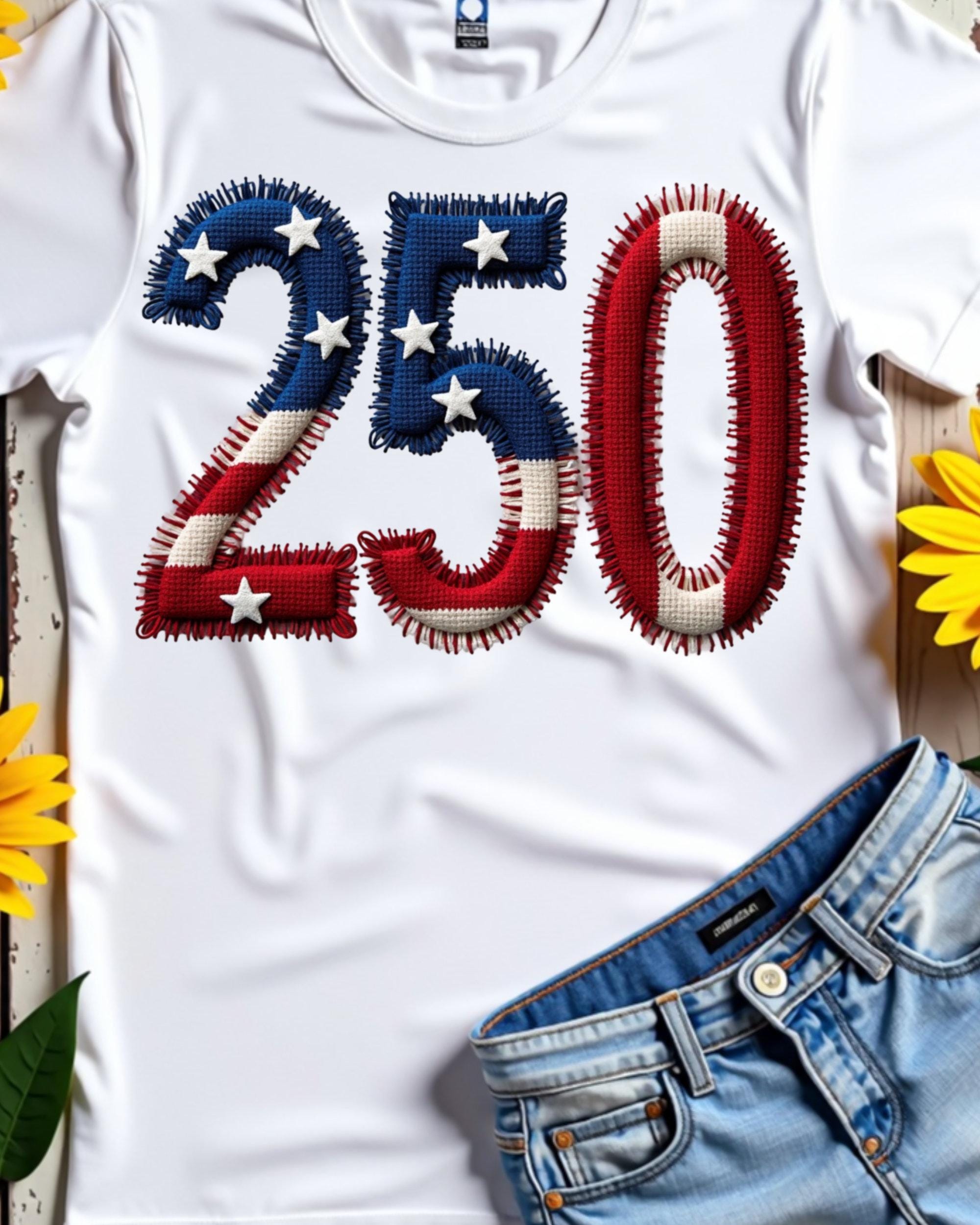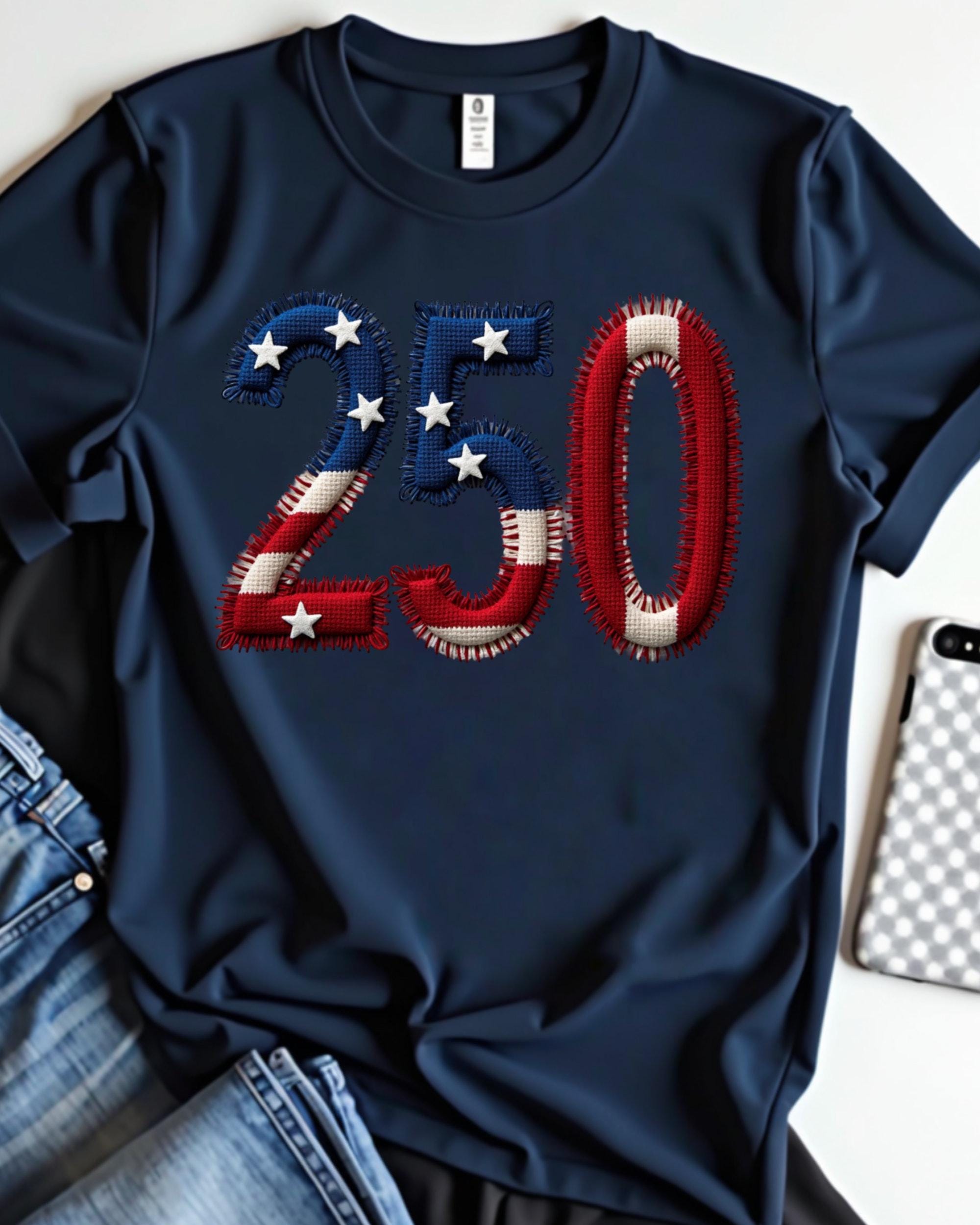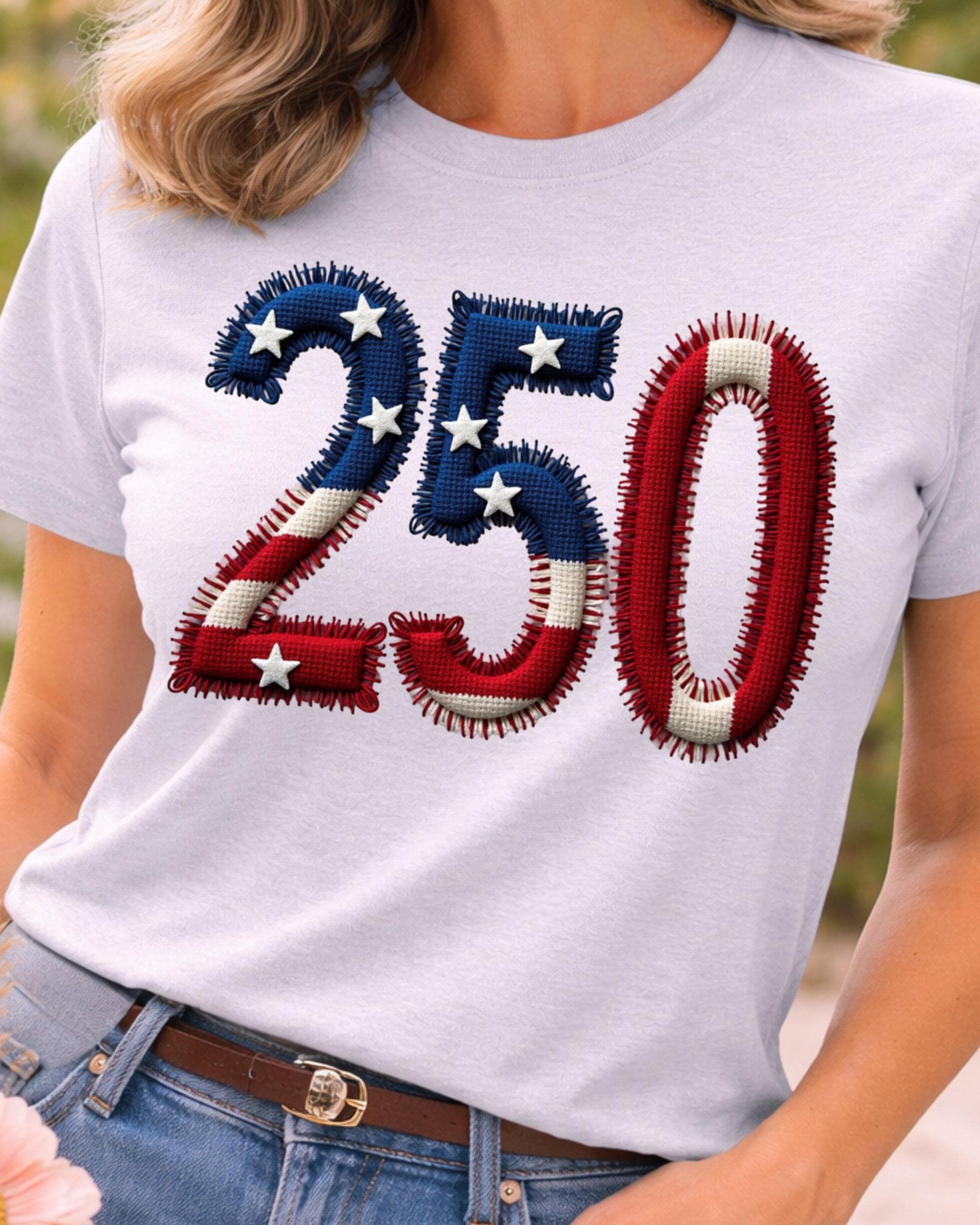 Celebrate America’s 250th anniversary with this USA 250 PNG featuring a faux embroidery patriotic design. This America 250 PNG is perfect for 4th of July shirts, sweatshirts, tumblers, mugs, tote bags, and sublimation projects. A great digital design for patriotic crafts, Independence Day apparel, and festive USA-themed creations.